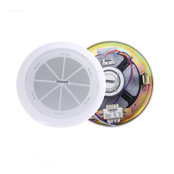 6W 6.5" Ceiling Speaker ●Built-in 100v/70v transformer ●In-ceiling type loudspeaker ●6.5” paper cone driver unit ●Rated power output at 1.5W-10W ●High sensitivity(92±2dB) ●ABS white engineering plastic ●Fast installation by spring clip