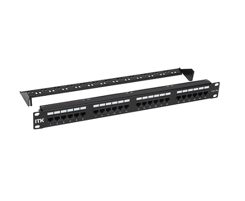 Патч-панель 1U кат.5E UTP 24 порта с кабельным органайзером, предназначенная для коммутации на порты активного сетевого оборудования, размещённого в серверных и распределительных узлах; Количество портов:24; Размер AWG:22...24; Диаметр проводника:0,51...0,64 мм; Макс. сила тока:1.5 А; Размеры:482.6 мм х 121.0 мм х 44.5 мм; Цвет:Чёрный.