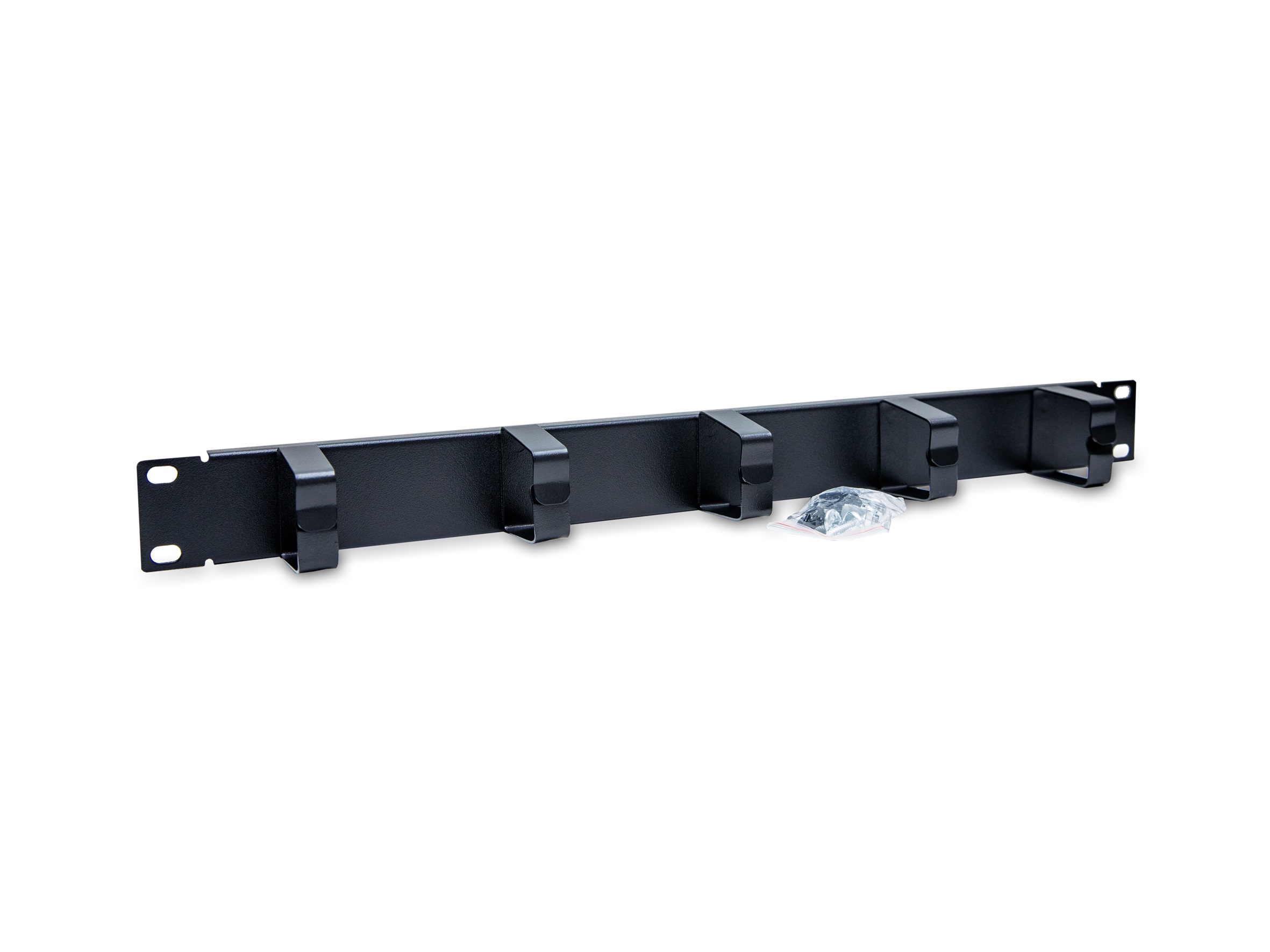 19" 1U кабельный органайзер 5 колец ,предназначенный для горизонтальной организации кабеля и кабельных пучков в шкафах и стойках, для укладки кабелей в пространствах между патч-панелями и установленным активным оборудованием.