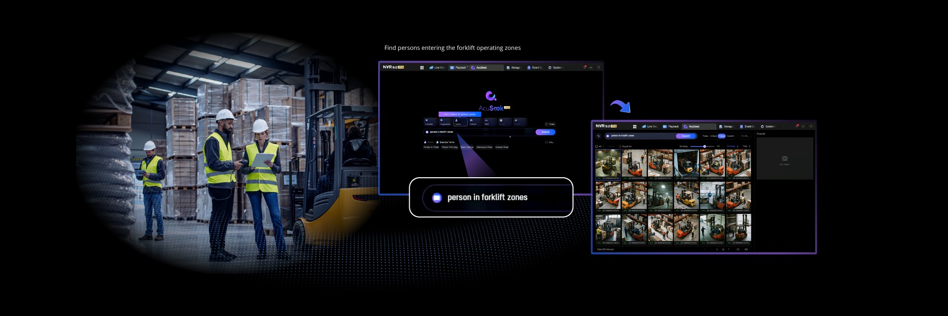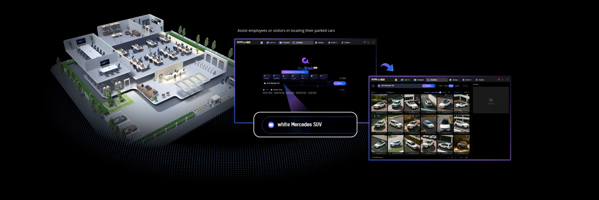 Видеорегистраторы AcuSeek, основанные на большой мультимодальной модели искусственного интеллекта, обеспечивают поиск видео по тексту, позволяя пользователям быстро находить видео с определенным объектом. Благодаря пониманию и сопоставлению визуального контента и естественного языка AcuSeek обеспечивает человекоподобное восприятие при машинной точности и скорости.